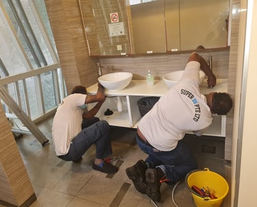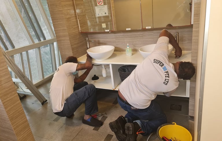Our professional plumbers were called in to repair a leaking sink pipe and toilet flush system.