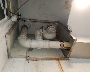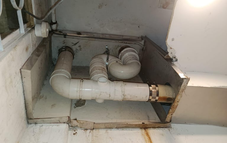 The old drainage pipes were corroded and leaking, causing water stains and unpleasant odours in the surrounding area. The fittings had become loose, requiring a full replacement to prevent further damage.