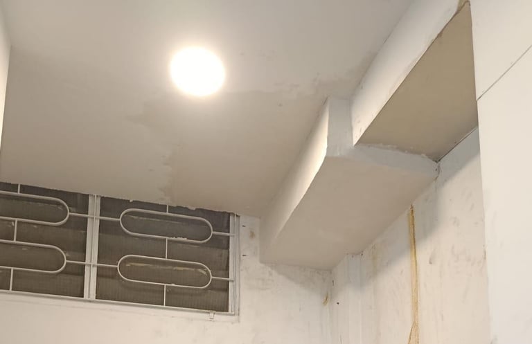 Our team carefully sealed, patched, and repainted the ceiling โ fully restoring it to a clean, professional finish that blends seamlessly with the rest of the interior.